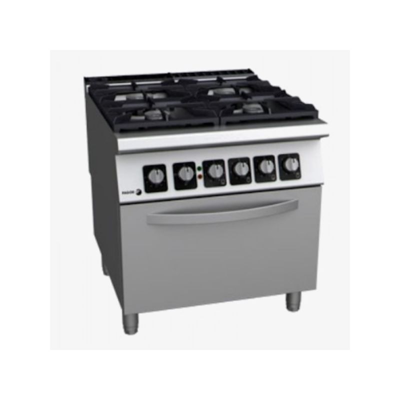 Ce fourneau de cuisine professionnel à gaz 4 brûleurs ouverts de la série 900 de Fagor dispose d'un four à chaleur statique.