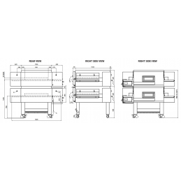 Dim : 1650 x 1650 x 2160 mm- Capacité et Production : 6 Pizza de ø 30 cm ( 100 p/h )- Ouverture de la bouche 500 mm- Potentiel Gaz Total : 28 KwConsommation Gaz : Methane 2.9 m³/h // GPL 2.1 Kg/h- Poids : 1900 Kg