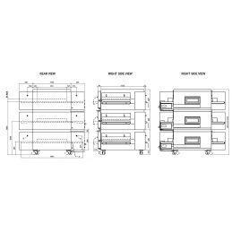 - Dim : 1200 x 955 x 450 mm - Dim chambre : 400 x 540 x 100 mm - Production horaire : 22 pizzas ø 33 cm - Dim tapis : 1070 x 400 mm - Puissance : 9,75 kw - Livrée sans pied