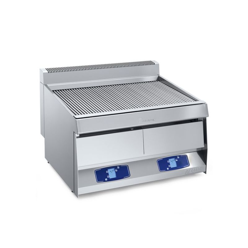 - En acier inoxydable AISI 304 - Zones de cuisson à température réglable - Tiroir avec bac collecteur d’eau à remplissage manuel - Surface de cuisson rabattable.