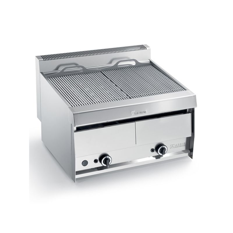 - En acier inoxydable AISI 304 - Zones de cuisson à température réglable - Tiroir avec bac collecteur d’eau à remplissage manuel - Alimentation : Gaz (3/4”) / Gas (3/4”)