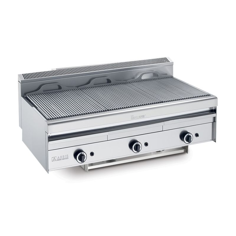 - En acier inoxydable AISI 304 - Zones de cuisson à température réglable - Tiroir avec bac collecteur d’eau à remplissage manuel - Surface de cuisson rabattable. - Alimentation : Gaz (3/4”) / Gas (3/4”)
