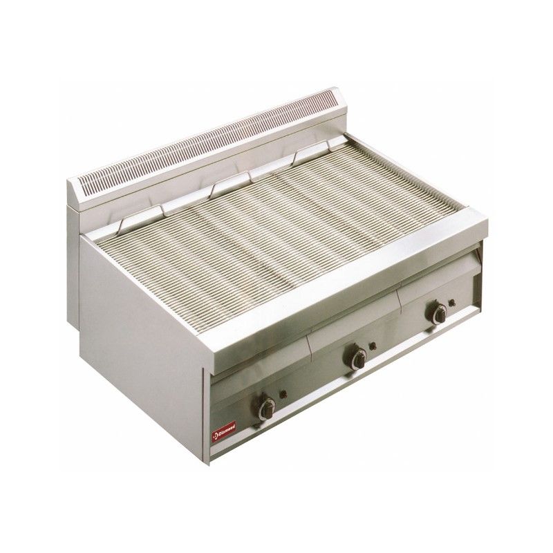 Un appareil professionnel qui permet de faire d’excellentes grillades sans que les aliments soient en contact avec la flamme et qu’ils restent moelleux grâce à la vapeur dégagée par un bac à eau inférieur qui recueille également les jus de cuisson et atténue la fumée.