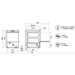 Lave-vaisselle à ouverture frontale GN1/1 2,90 kW Advance Fagor Professional Lave-vaisselle à ouverture frontale - Génération EVO Dimensions (LxPxH en mm) : 600x600x830 Température du réservoir [ºC] : 60 Puissance (KW) : MULTIPOWER Tension : MULTIVOLTAGE Hauteur utile interne de 380 mm. Admet les plateaux GN-1/1 Contrôle thermostatique des...