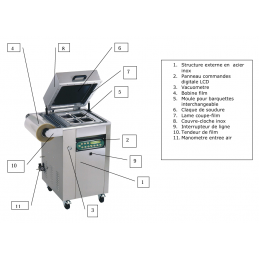 La machine doit être utilisée avec un compresseur d’air de 20 litres, 1.5 - 2 Hp. et une bouteille de gaz inerte (le mélange de gaz vous sera fourni par une entreprise du secteur, car nos techniciens sont spécialisés seulement dans la fabrication des machines prédisposées à cet usage, mais pas dans le gaz).