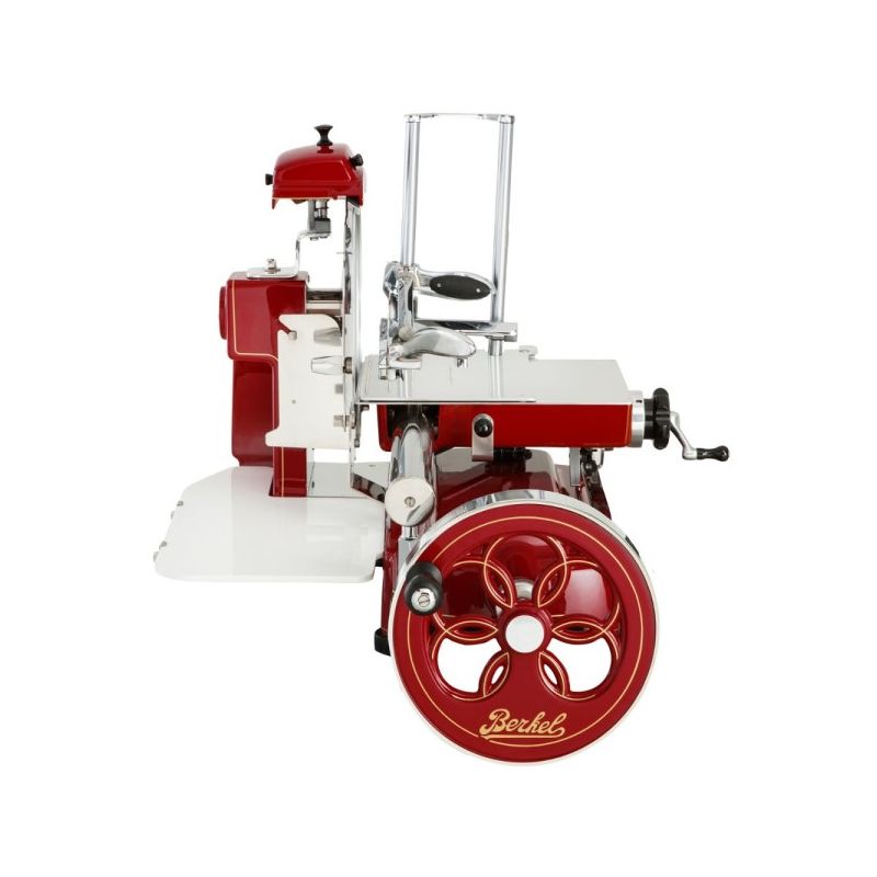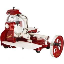 Une trancheuse à volant domestique ayant une grande capacité de coupe ainsi qu'une esthétique qui s'inspire des modèles d'époque.