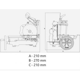 - Puissance: 0,23 Kw - Dimensions : 620x440x390 mm - Diamètre lame : 275 mm - Epaisseur de coupe: 1-15 mm