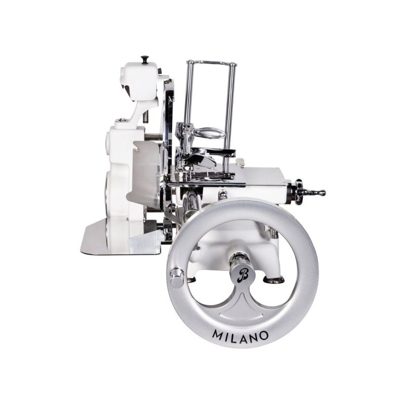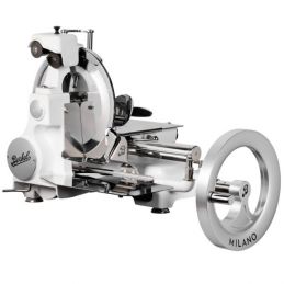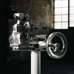 une version plus moderne de la trancheuse à volant B114 pour un client qui recherche la perfection de découpe et une esthétique alignée avec le style minimaliste de ces derniers temps : Trancheuse manuel à volant B114X, le mélange parfait d'un design essentiel et d'une performance de découpe exceptionnelle. La socle incluse complète le style de cette version du trancheuses à Volant.